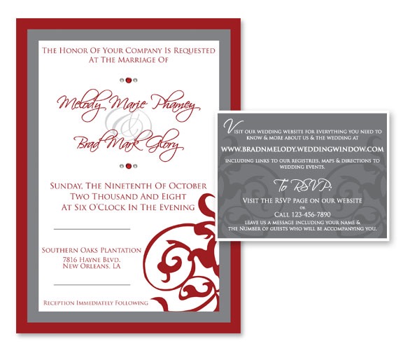 Wedding Invitations Red and Pewter With Insert Cards